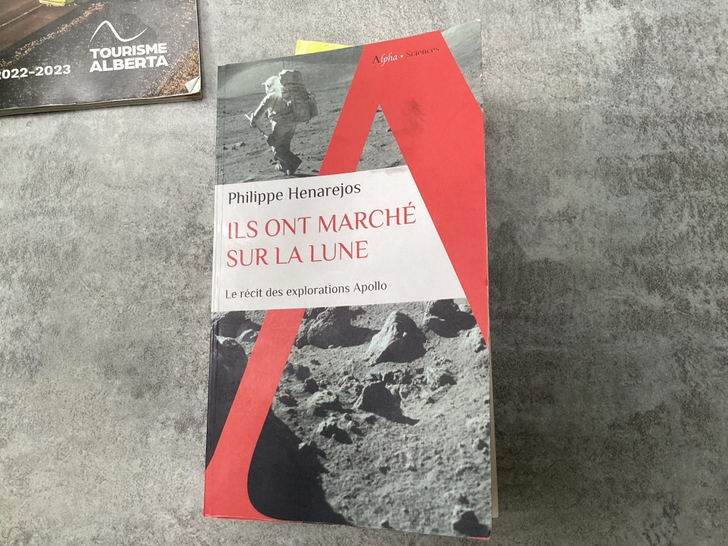 7. Autre futilité barbante : Mes commentaires sur ma lecture du moment : « Ils ont marché sur la Lune », essai de Philippe Henarejos. Ça raconte en détails les séjours des douze astronautes du programme Apollo qui ont posé les pieds sur la Lune. Du célébrissime Neil Armstrong, au fort moins connu Harrison Schmitt (le douzième et dernier). Pour chacune des six missions (Apollo 11 à 17; excluant l’échec d’Apollo 13), y sont décrits les états d’âmes (surtout émerveillés; mais parfois désespérément neutres) de chacun de ces hommes (pas de femmes), les gestes qu’ils ont effectués (installations d’instruments scientifiques, cueillettes d’échantillons, expériences, facéties (bondir, jouer au golf) ), les sites qu’ils ont explorés, les paroles qu’ils ont prononcées.