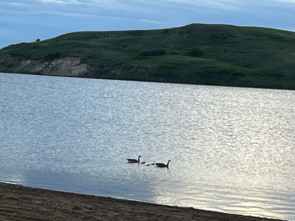 1. Cypress Hills Alberta Provincial Park. Au petit matin. En marchant sur la rive du lac Elkwater, j’ai réveillé la vingtaine d’oies (et leurs nombreux oisillons) qui y relaxaient. Ça crie mes amis. Vos boites bazwell ! J’étais zen moi là !