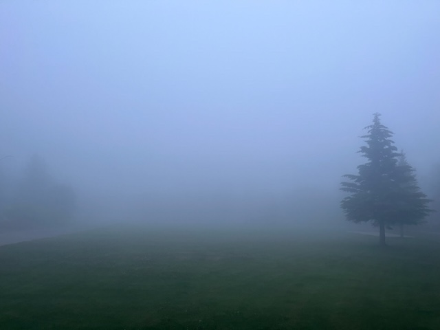 9. Bon. 7h20. Suis lavé et peigné (!), j’ai déjeuné, fais mes mots-croisés, pris une marche; dans la brume (il y a une couple d’oies qui ont été surprises de me voir retontir. Ça criaille, ça criaille). Bonne nouvelle, Météo Média a changé d’idée. Il ne pleuvra pas aujourd’hui.