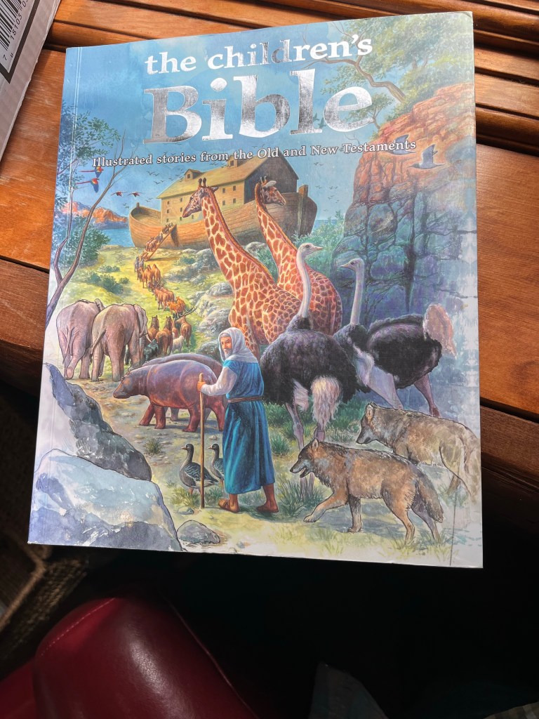 12. Petit arrêt au Cafe 12-34. Je fouille les quelques lectures à la disposition des clients. Sur le dessus de la pile : The children’s Bible. J’hésite entre surpris, déçu ou les deux ?