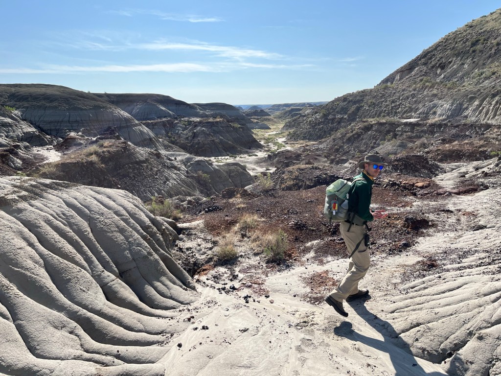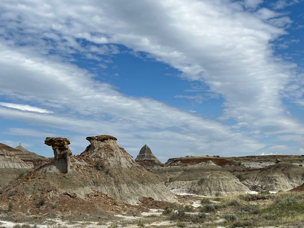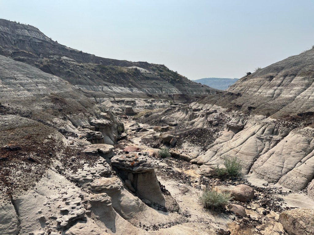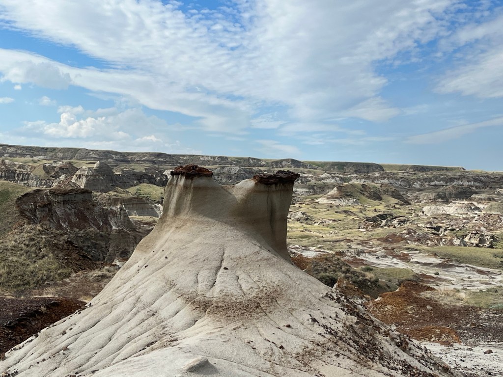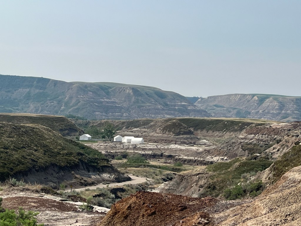 1. L’Alberta est une pépinière planétaire de squelettes de dinosaures. On les trouve principalement sur deux sites de la vaste région des Badlands : Au Dinosaur Provincial Park (DPP), reconnu par l’Unesco; et à Drumheller où l’on trouve la plus haute concentration de fossiles de dinosaures au monde. Je commence par cinq nuits au DPP avec deux tours guidés pour comprendre le site ainsi que « Comment ces cons de dinosaures s’y sont embourbés ? ».