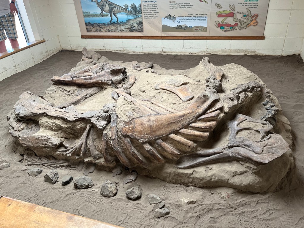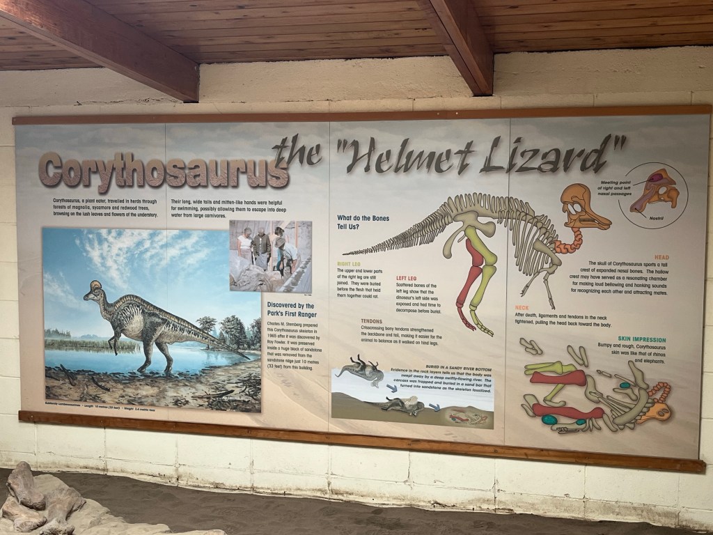 7. Voici Helmet. Un Corythosaurus. Découvert en 1955. Presqu’entier. Bon, c’est pas évident pour vous, amateurs, mais moi je suis maintenant un spécialiste (j’ai quand même fais deux heures avec un guide 🤔).