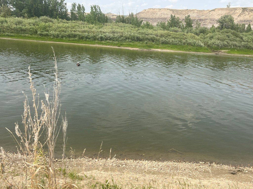 37. Rivière Red Deer. Quand on est un vrai pêcheur, on a pas peur de se mouiller (agrandissez; vous allez comprendre).
