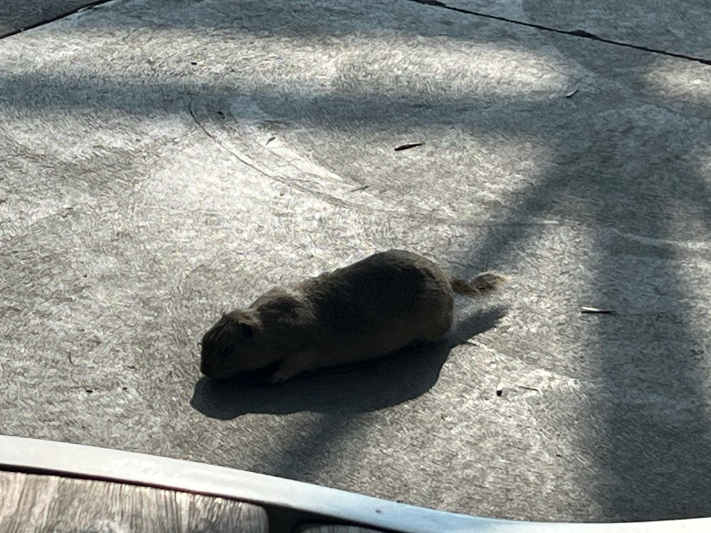 41. C’est un écureuil du coin dont j’oublie le nom. Pas une grosse queue car, contrairement aux nôtres qui vivent dans les arbres, celui-ci vit dans un terrier.