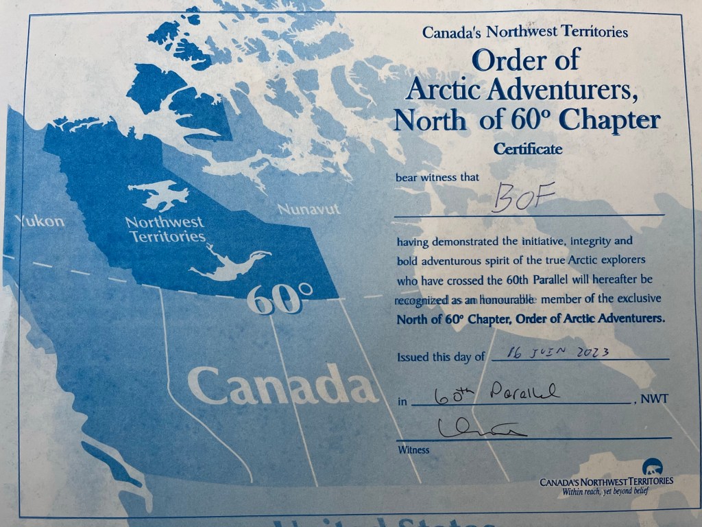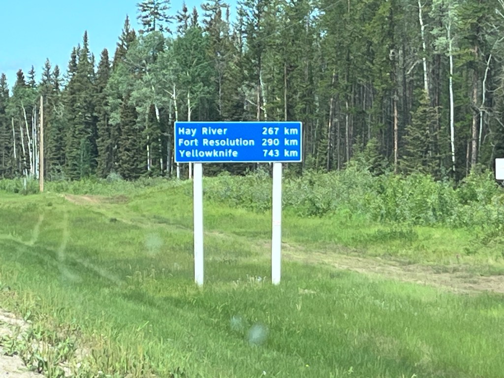 1. Le passage du 60ième parallèle marque la frontière sud des Territoires du Nord-Ouest. Ici, en cette mi-juin, à quelques jours du solstice d’été, le Soleil brille plus de 19 heures par jour (à Montréal ce n’est qu’un minuscule (!) 15h30 par jour). Dans quelques semaines ce sera le passage du Cercle Polaire Arctique (66 degrés nord) avec la présence du Soleil 24 heures sur 24.