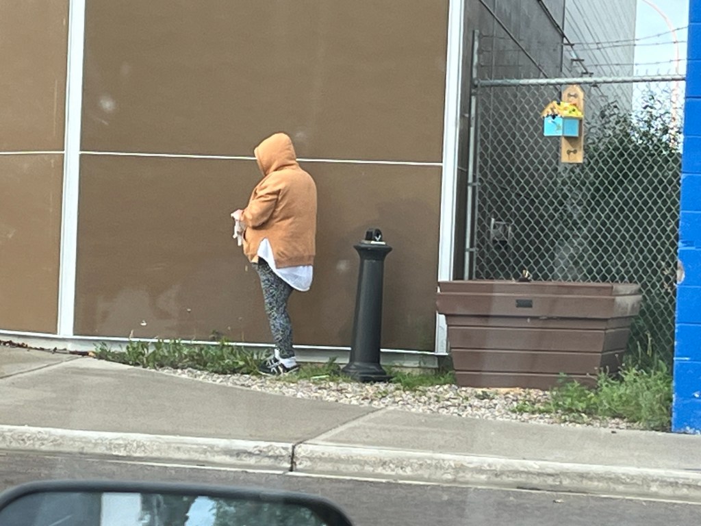 12. Hay River au petit matin. God ! La dame ci-dessous a vidé le cendrier public au sol et a récupéré les mégots encore potables. On a pas tous la même bonne étoile dans la vie 🙁. Déchirant.