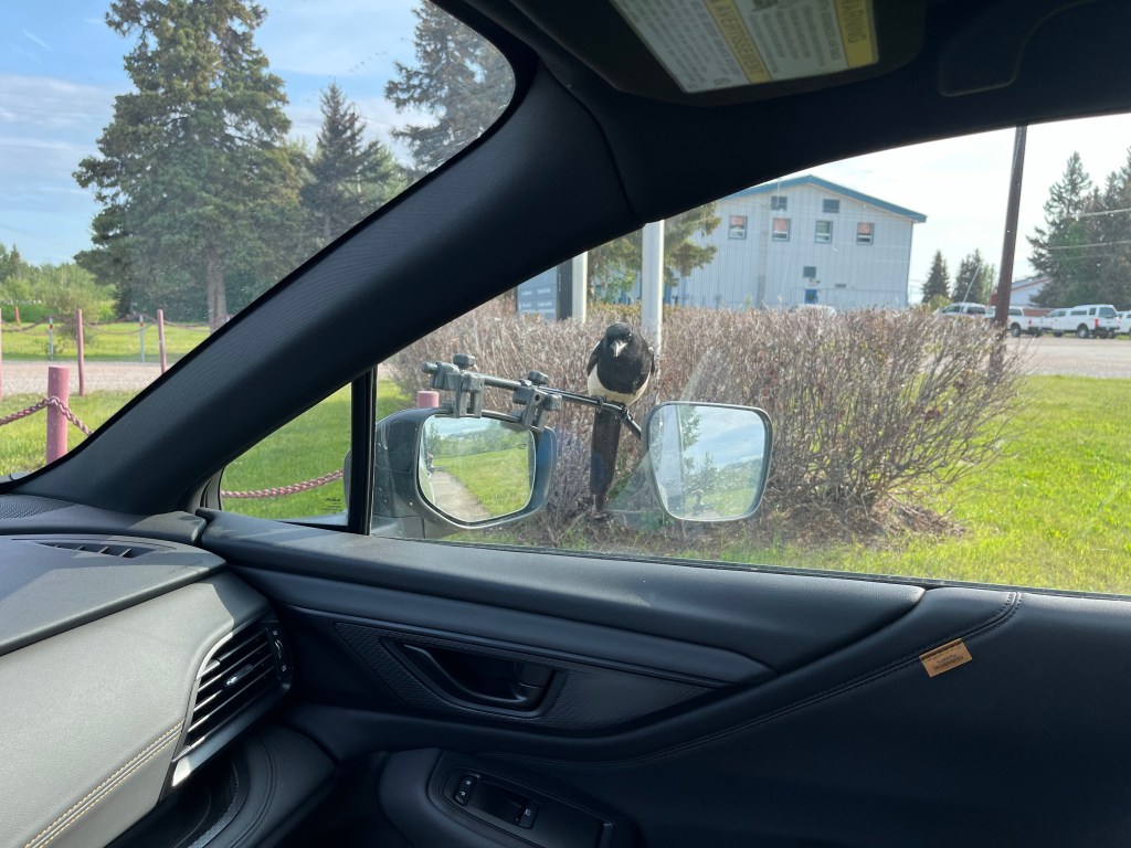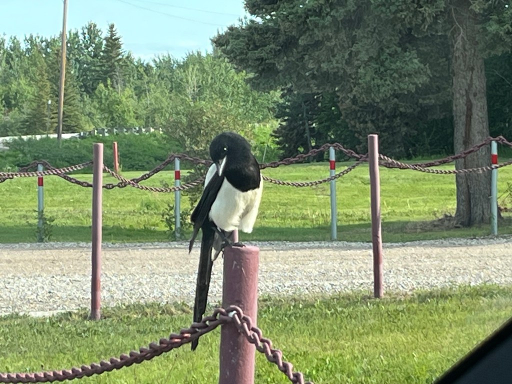 13. Allô toi ! (Soeur me dit que c’est un magpie. Mais surnommons-le Roger; mettons). Oh boy ! Pas content le/la Roger. Il/elle attaque mon auto bazwell ! T’as gagné. Je m’en vais.