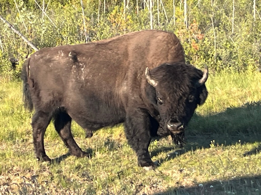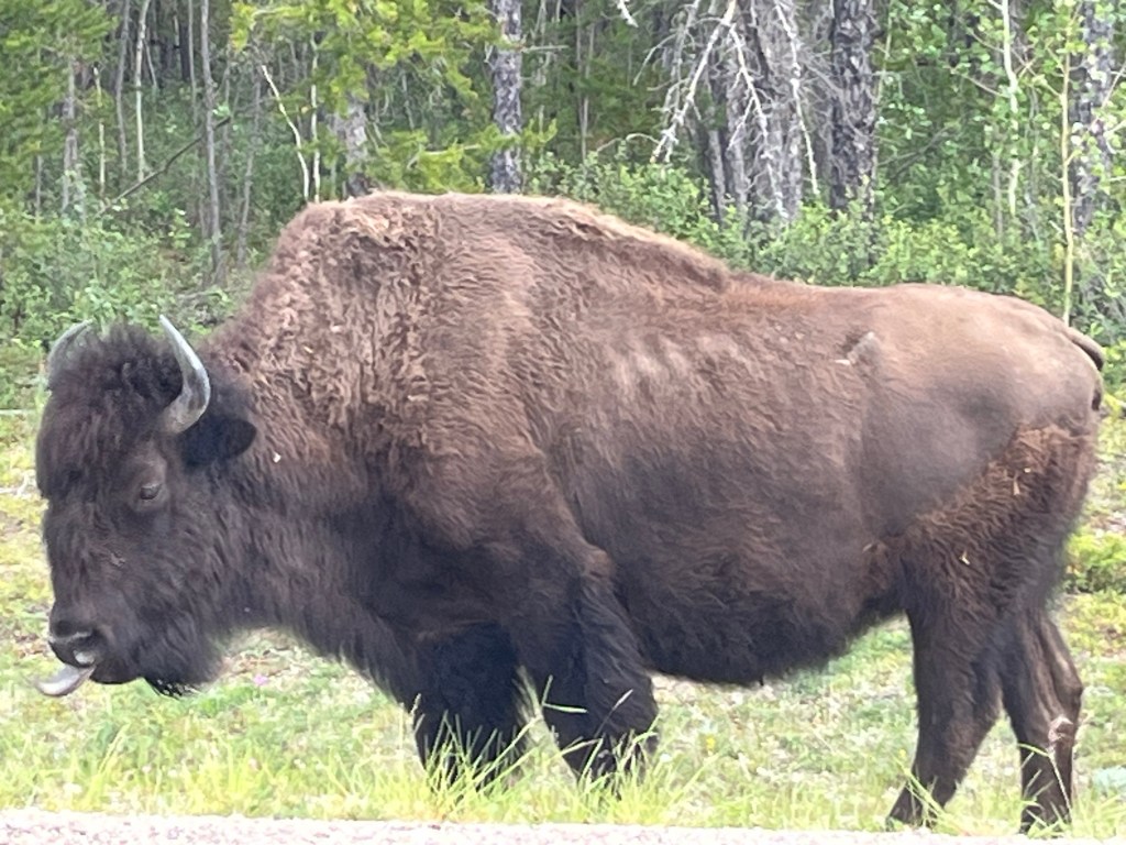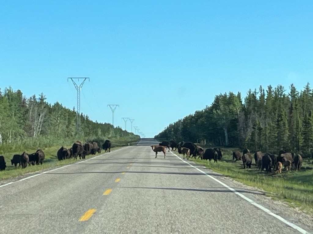 34. Bon. Après les chevreuils et les dinosaures, ce sont les bisons qui deviennent lancinants. Même que eux c’est pire; faut parfois slalomer entre les bouses qui parsèment la route.
