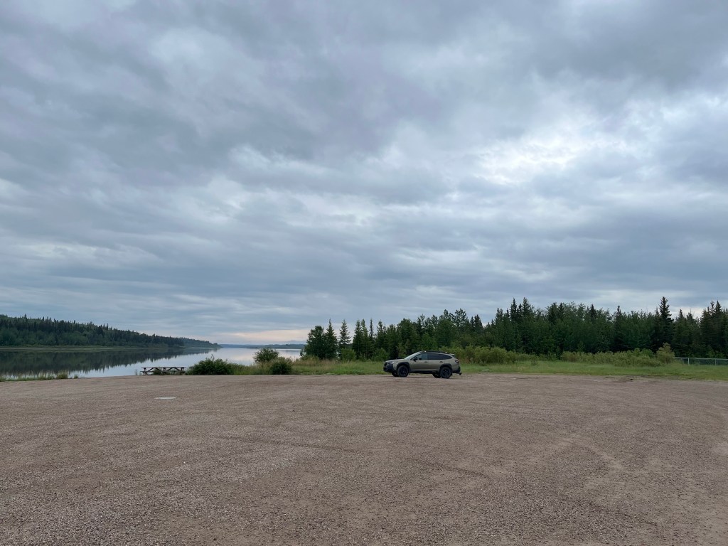 4. Zut de fudge ! Demain je comptais me rendre dormir au Parc National Wood Buffalo mais les feux de forêts pensent autrement. Une bonne partie du parc est fermée; dont le camping. Ça c’est vers l’est. Vers l’ouest, le chemin pour Whitehorse (la 77-Liard Highway puis la 97-Alaska Highway) est fermé lui aussi. Toujours dû aux feux de forêts.