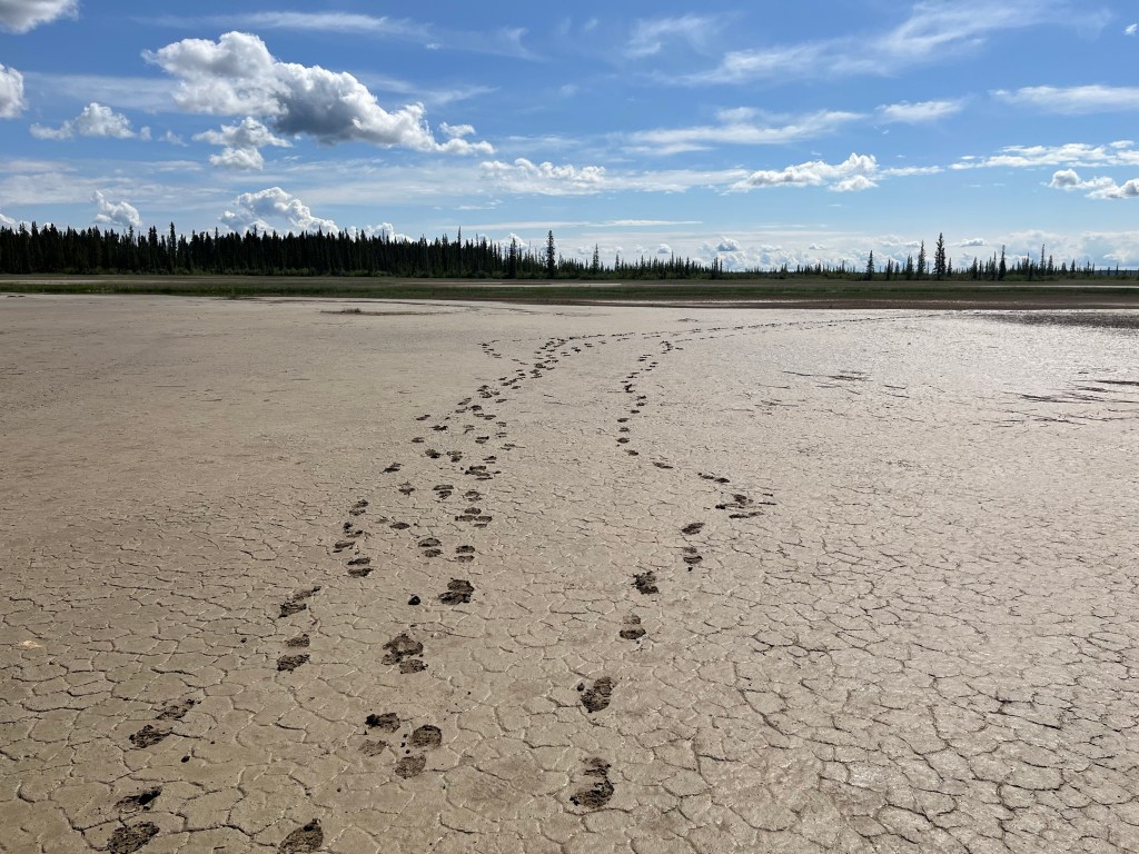 25. Parc Canada recommande de marcher pieds nus sur les plaines salées du parc Wood Buffalo. Sauf qu’il a tellement plu hier que c’est de la bouette. De la bouette de sel peut-être … mais de la bouette quand même.