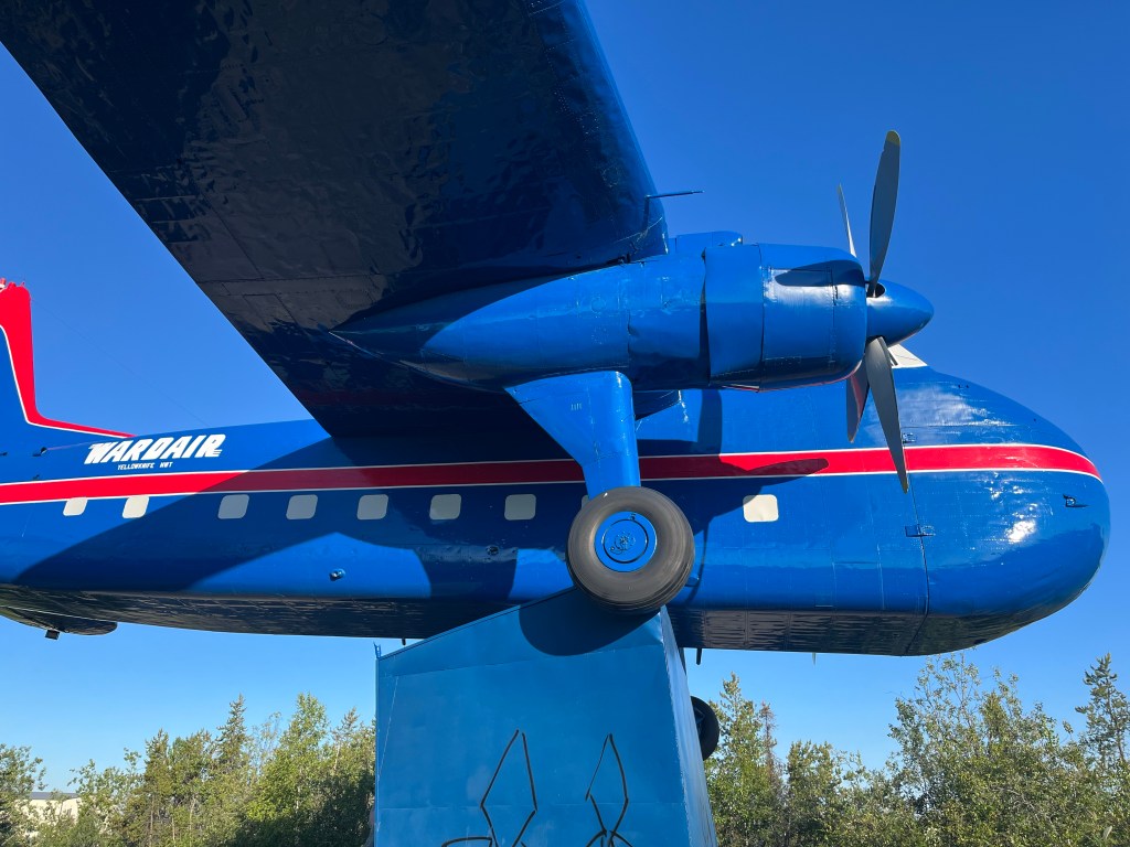 3. Bristol 170 Freighter Mk 31 de 1952. Code CF-TFX. Il surplombe l’entrée de Yellowknife. C’est le premier avion à avoir poser ses roues au Pôle Nord en 1967. “Ses roues” car le premier pilote a y poser un avion “à patins” (un Tupolev TB-3) est le russe Mikhail Vasilyevich Vodopyanov le 21 mai 1937.
