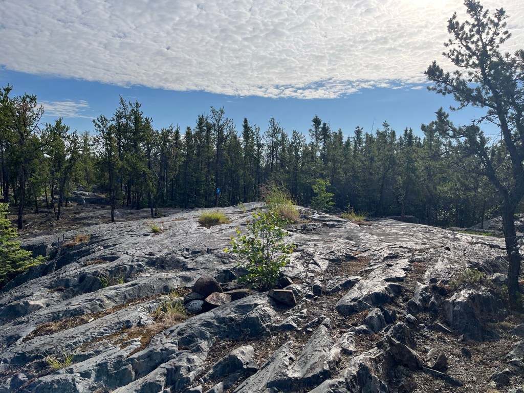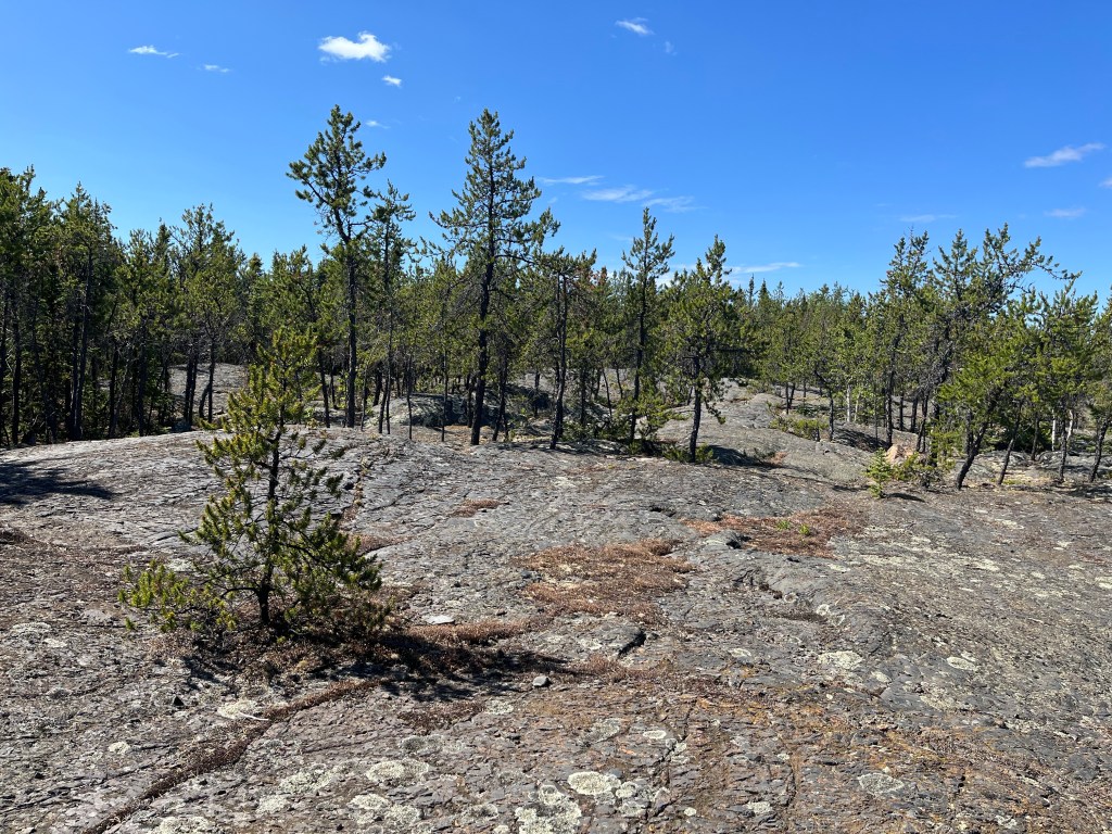 7. C’est ça Yellowknife. Une ville sur le roc. Mais un roc plein de vagues, de vallons et de butes. Et les arbres trouvent le moyen de s’y enraciner. Photo : La vue depuis mon nouveau site de camping. J’ai changé; suis plus loin de la route et de l’aéroport.
