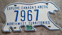 16. La plaque minéralogique des TNO est en forme d’ours polaire. Ironiquement c’est plutôt au Nunavut que se trouve le gros de la population d’ours polaires du Canada (qui compte environ 16 000 individus sur les 26 000 sur la planète). Le Nunavut abrite au moins 10 000 ours, et les TNO “seulement” 3 000. Concernant la plaque, il faut savoir que, jusqu’en 1999, les TNO et le Nunavut ne formaient qu’un seul et même territoire. De là la pertinence de la forme de la plaque … à l’époque.