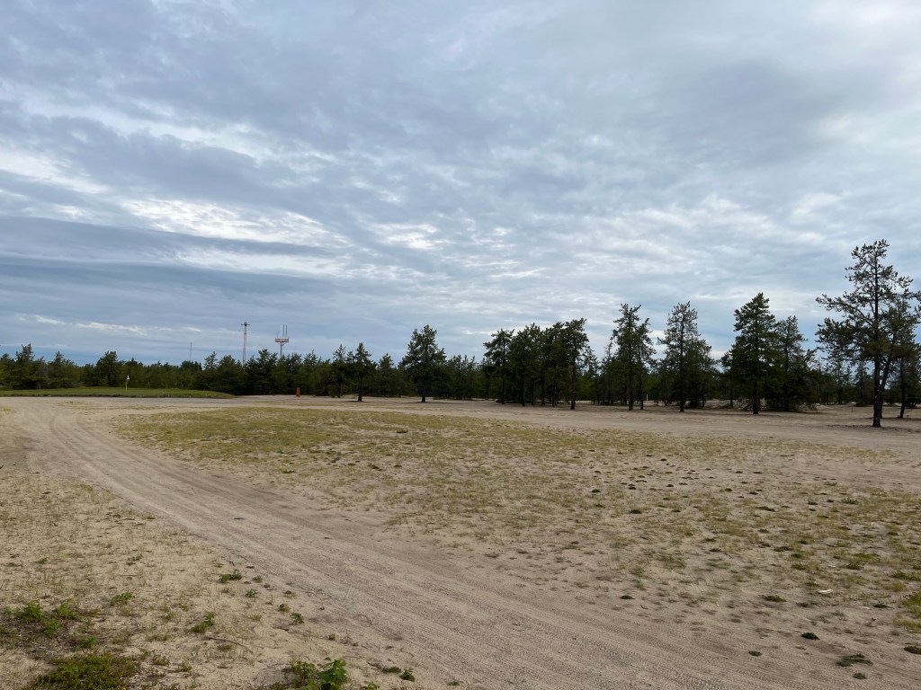 20. Club de golf de Yellowknife. Ouf ! C’est pas le gazon de ceux de l’Écosse ! (Il y a un green à gauche). Je présume qu’ils jouent avec des balles oranges. Plus visibles dans le sable.