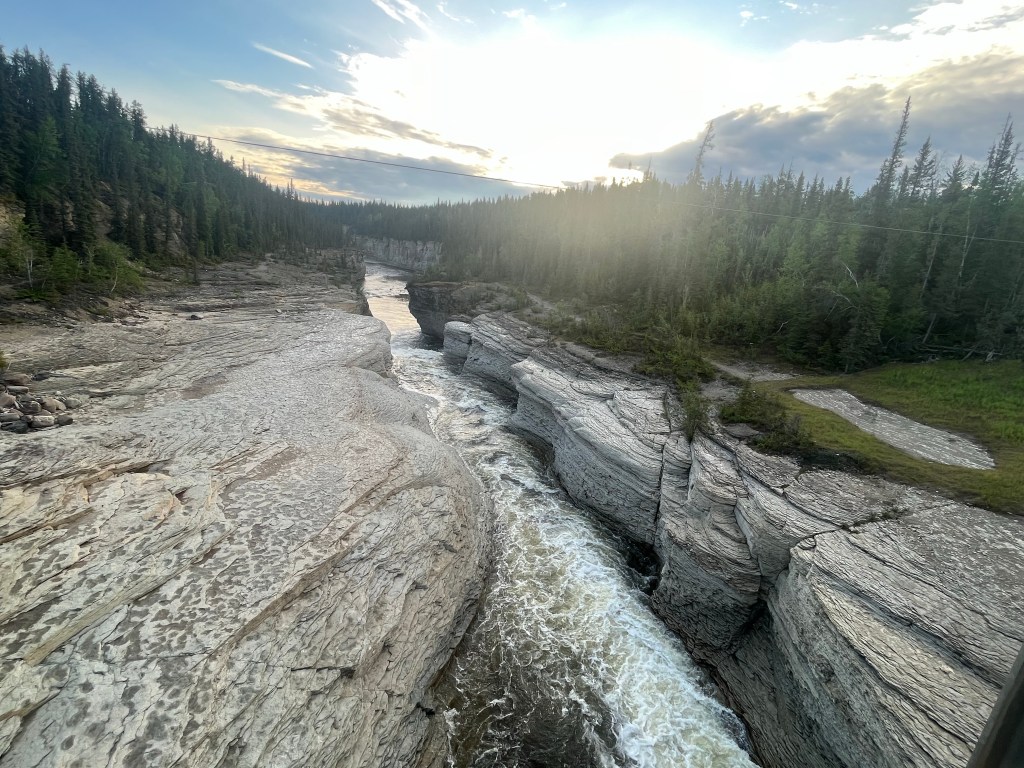 21. Yellowknife-Whitehorse. 1 900 kilomètres dont 300 en gravelle 😩. D’abord la Route Frontier Trail. Puis la Mackenzie Highway vers l’ouest. Et enfin la Liard Trail qui joint l’Alaska Highway un peu à l’ouest de Fort Nelson (en Colombie-Britannique). 1 900 km ? On va s’arrêter à quelques reprises. (Photo : Fort Providence)