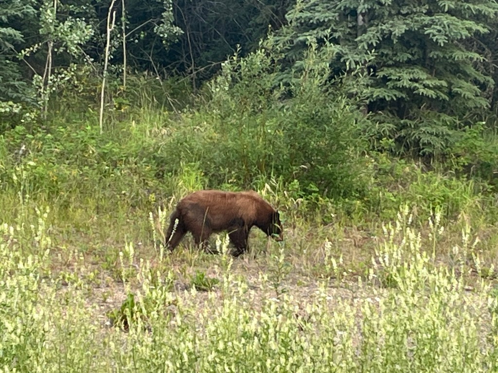3. Dawson-Whitehorse. 530 km en 8 heures (À la sortie de Dawson, les 200 premiers km de la Klondike Highway sont nids-de-poulesques). Quatre lapins, un lagopède, des dizaines de spermophiles arctiques, un loup gris 🤪 et le premier grizzly du périple. Probablement un ado (selon le réputé oursologue : Bof 🤔).