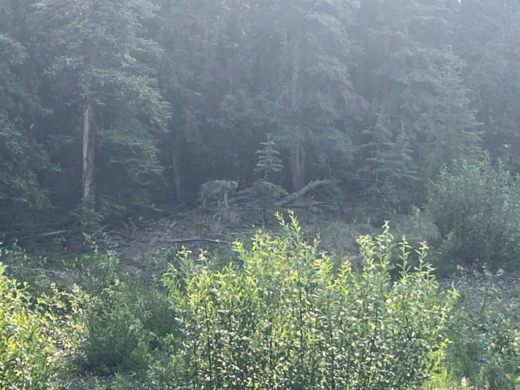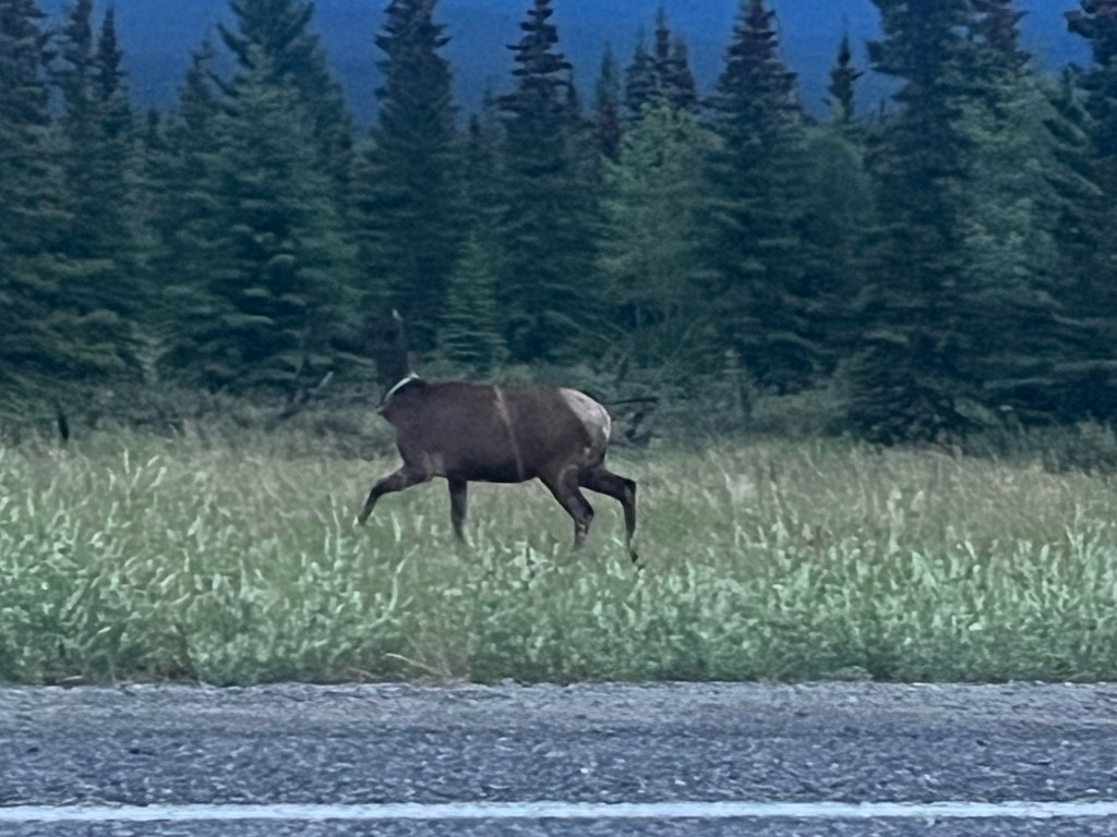 15. Au menu ce matin : quatre … heu … quatre quoi ? … wapitis ? … caribous ? … Interrogeons l’excellent site Yukon.ca. Bon, définitivement wapitis. Et comme on dit : “Wapiti du matin, prend ton bain”. Bon, je ne sais pas si on dit ça mais à trois jours sans douche, ce serait pas fou 😜.