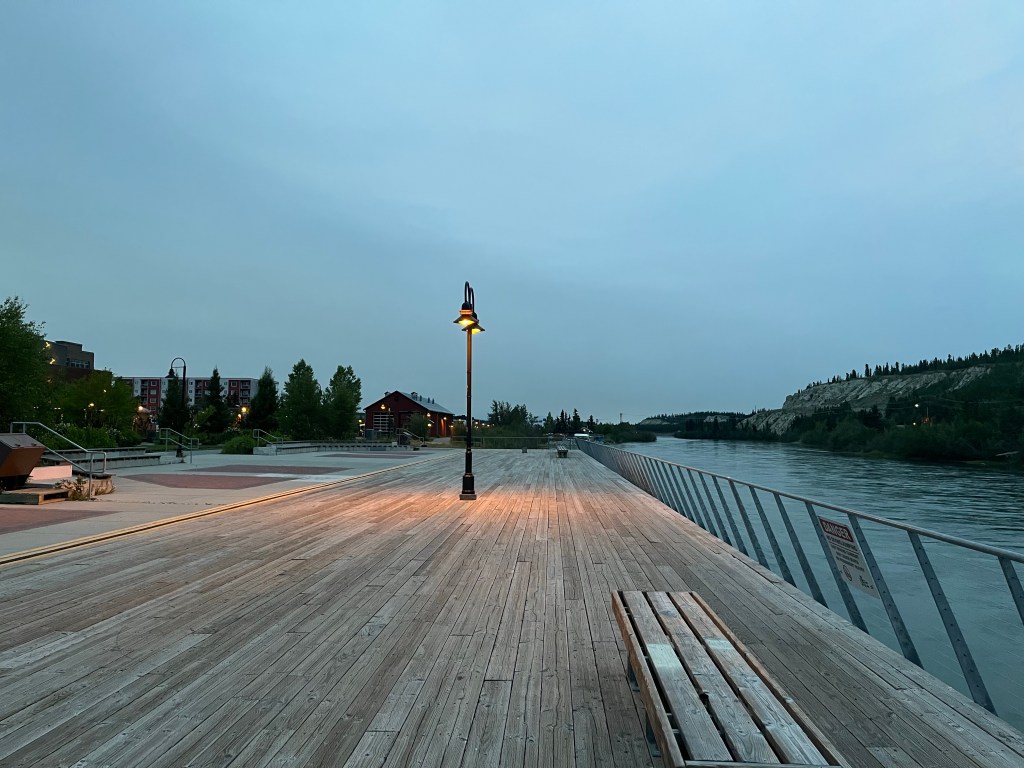 30. Coudon. Début de soirée. Ville zen Whitehorse ! Au loin, au Kwanlin Dün Cultural Centre, c’est la fête à coups de tam-tam. Et plus près de moi, un groupe de méditation, en cercle.