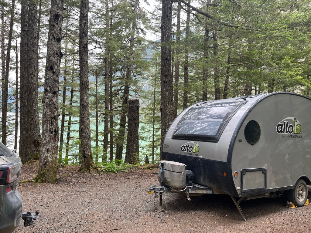 19. Chilkoot Lake State Recreation Site. À onze milles de Haynes. Quin. Direct by the lac Chilkoot mon homme ! C’est mieux que le bord de Highway des deux dernières nuits.