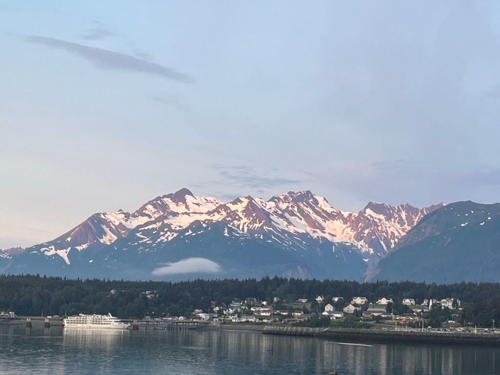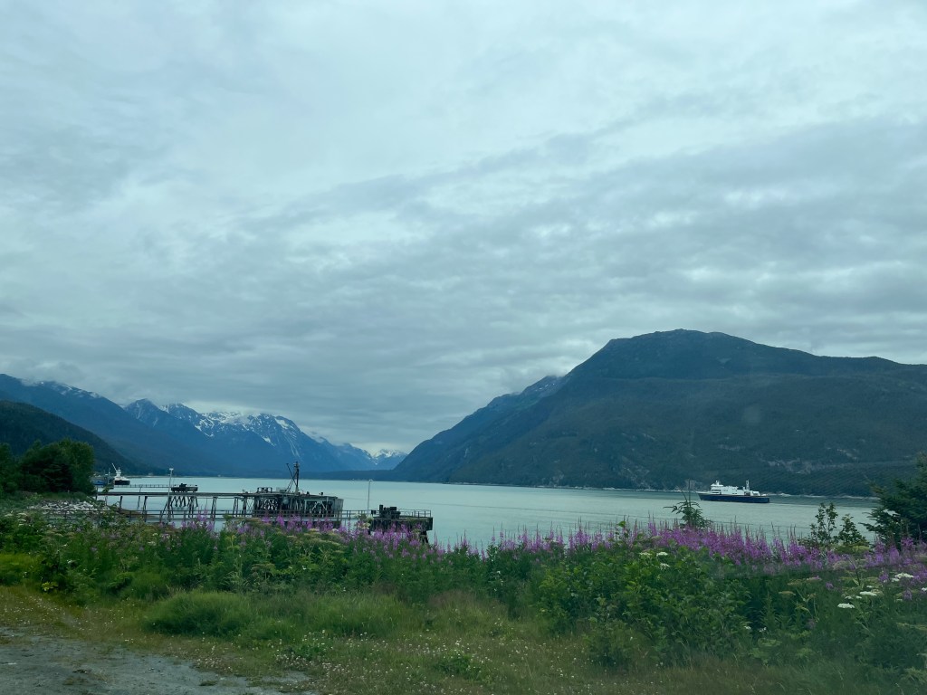 23. La cohue ce matin les amis. Pendant qu’au large un paquebot remonte vers Skagway, un autre le suit de quelques encablures alors qu’un troisième s’est amarré cette nuit à Haynes.