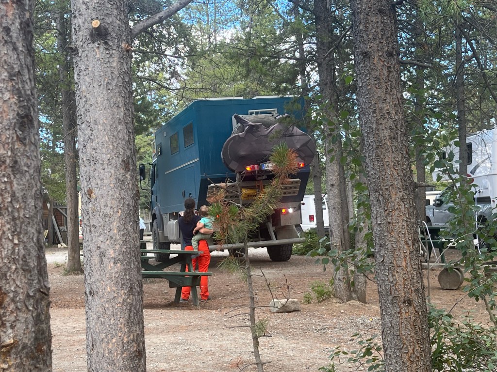 31. J’ai bien dû croiser une vingtaine de véhicules récréatifs avec des plaques européennes (allemandes ou suisses). Certains de ces véhicules sont des monstres de quatre mètres de haut avec des pneus géants. Ou bien ils font le tour du Monde et sont prêts à traverser toutes sortes de terrains … ou bien ils sont venus dans les territoires canadiens en s’imaginant des lieux marécageux sans routes. Question : Comment ils font pour décrocher des vélos si haut perchés ?