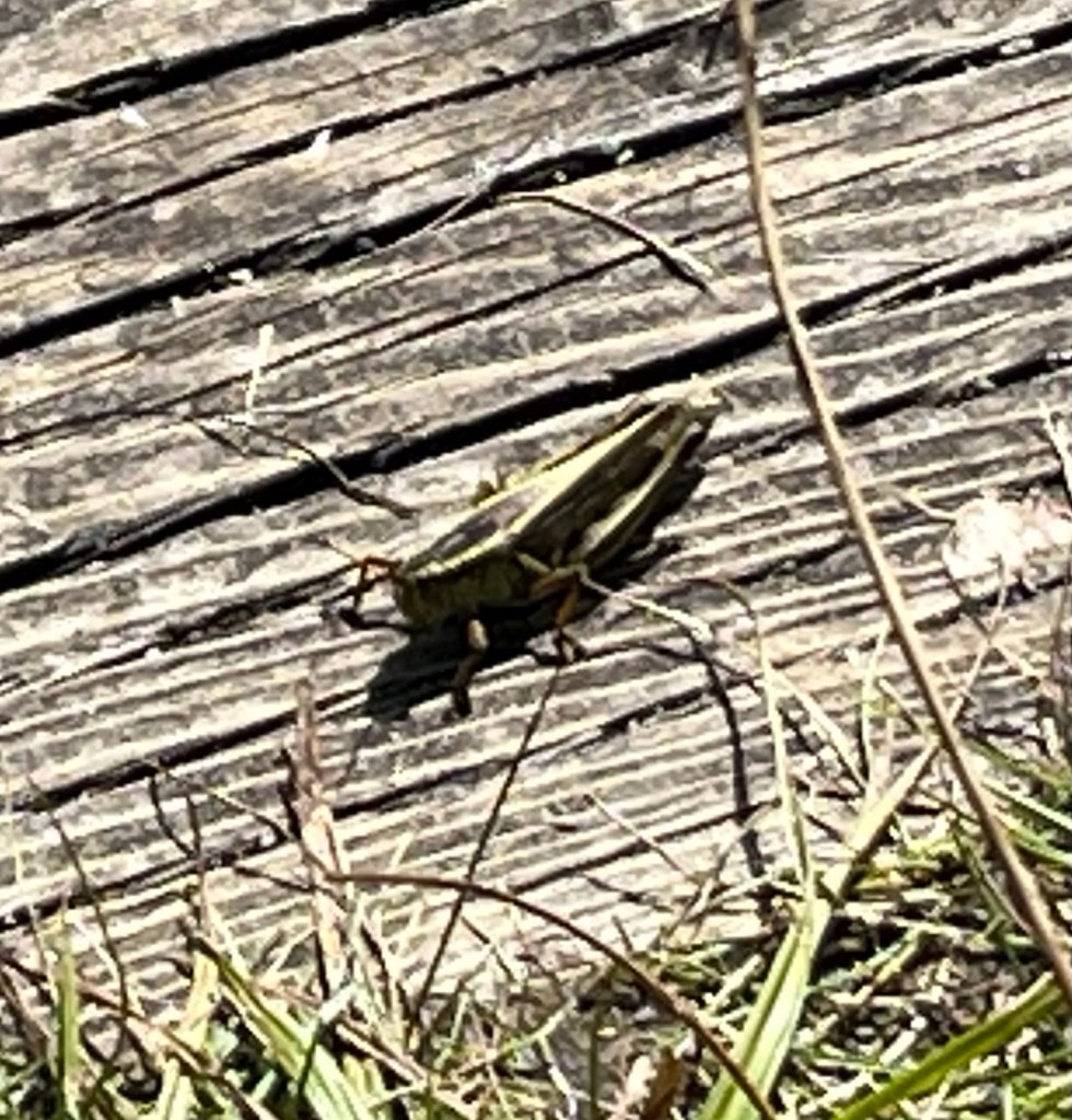 6. Une sauterelle. À l’époque de ma jeunesse il y en avait plein ! De nos jours ? C’est quand la dernière fois que vous en avez vu une au Québec ? Le Soleil (mai 2022) : “Certains travaux ont lié une baisse des populations de sauterelles à l’appauvrissement des brins d’herbe en azote”. Le Devoir (juillet 2022) : “Mise à part les grosses mouches au reflet métallique vert, on ne voit plus d’insectes; sauterelles, coléoptères, papillons, coccinelles du cru s’en sont allés…”.